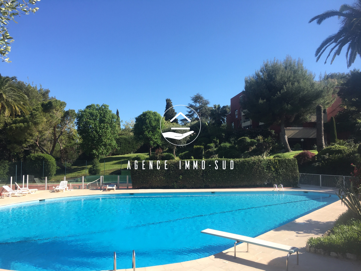 A vendre, Villeneuve Loubet. Coquet studio de 20m2 dans résidence de standing, parc, piscine et terrain de tennis. Studio en rez de jardin, composé d'une pièce principale avec coin cuisine équipée et salle de bain. Proche bord de mer. Nord Ouest. Cave.