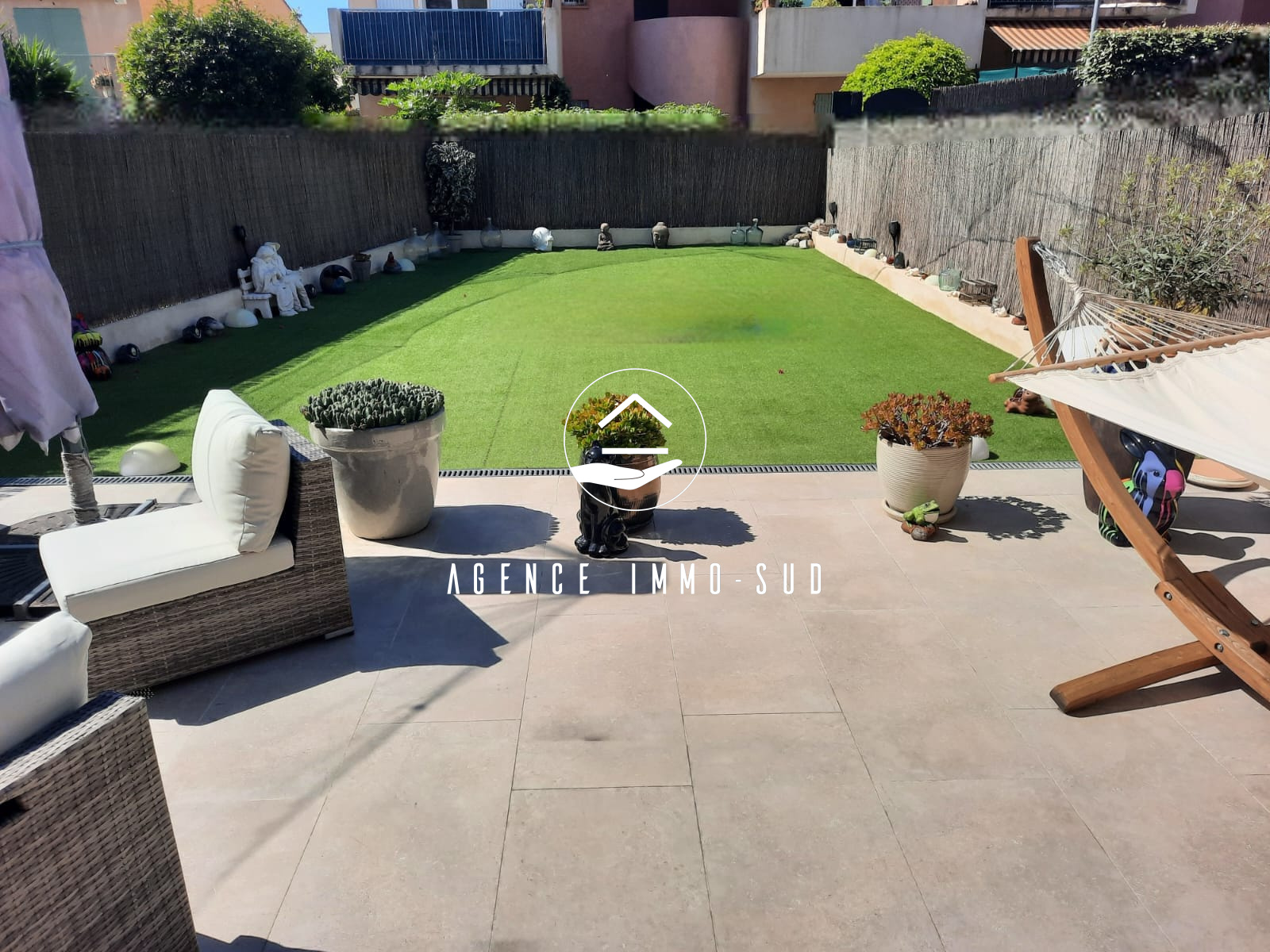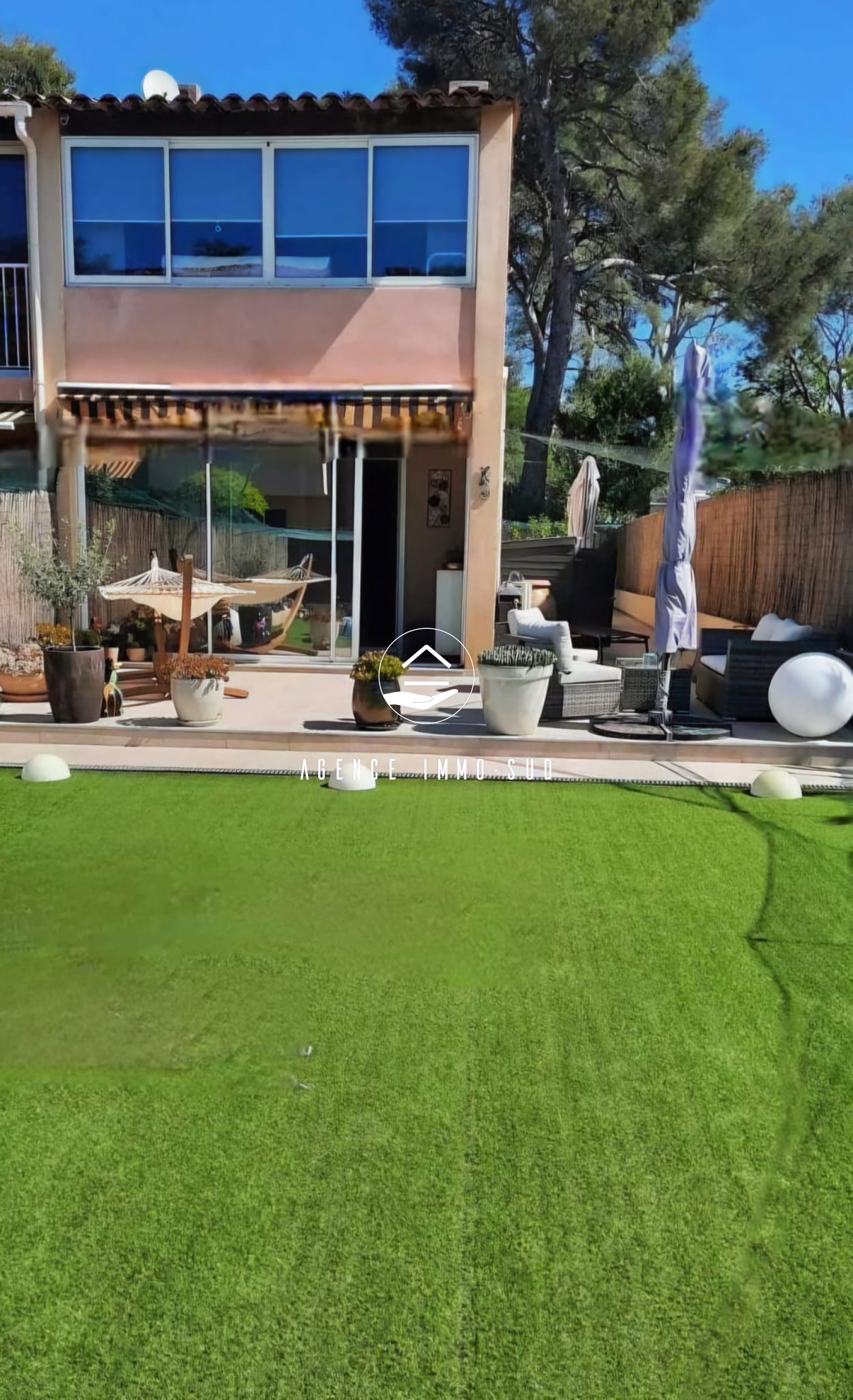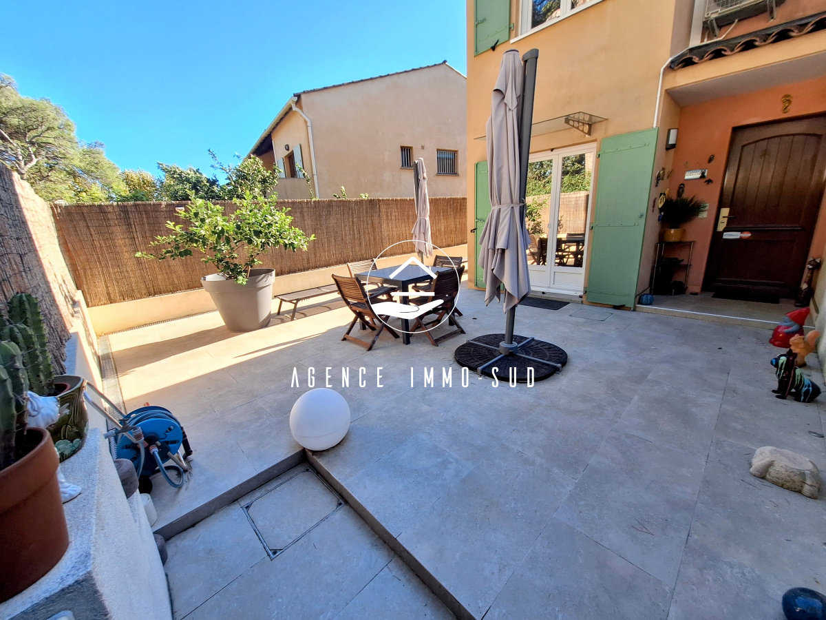 Quartier résidentiel des Maurettes, aux portes du parc de Vaugrenier, proche écoles et commerces, dans une résidence sécurisée avec piscine, jolie maison de 95 m² habitables (83 m² loi carrez) jumelée d'un côté avec près de 200 m² d'espace extérieur. En rez de jardin, un spacieux salon prolongé par une loggia donnant sur le jardin exposé sud, une grande cuisine indépendante donnant sur une belle terrasse avec coin barbecue et un toilette invité.